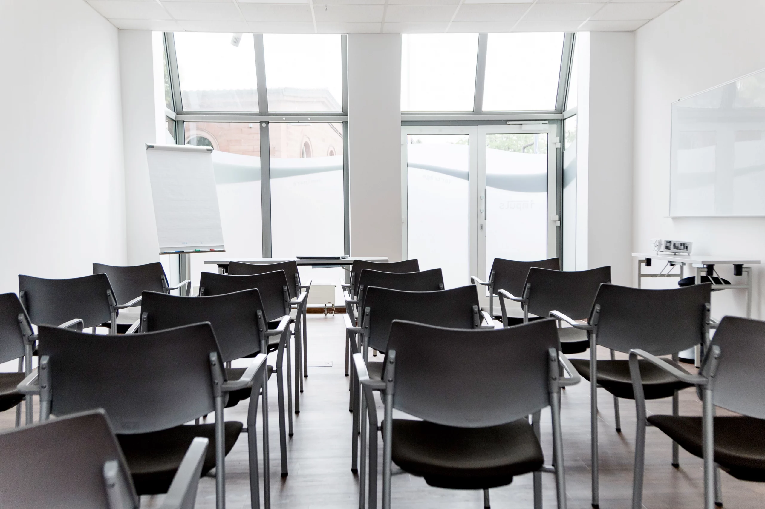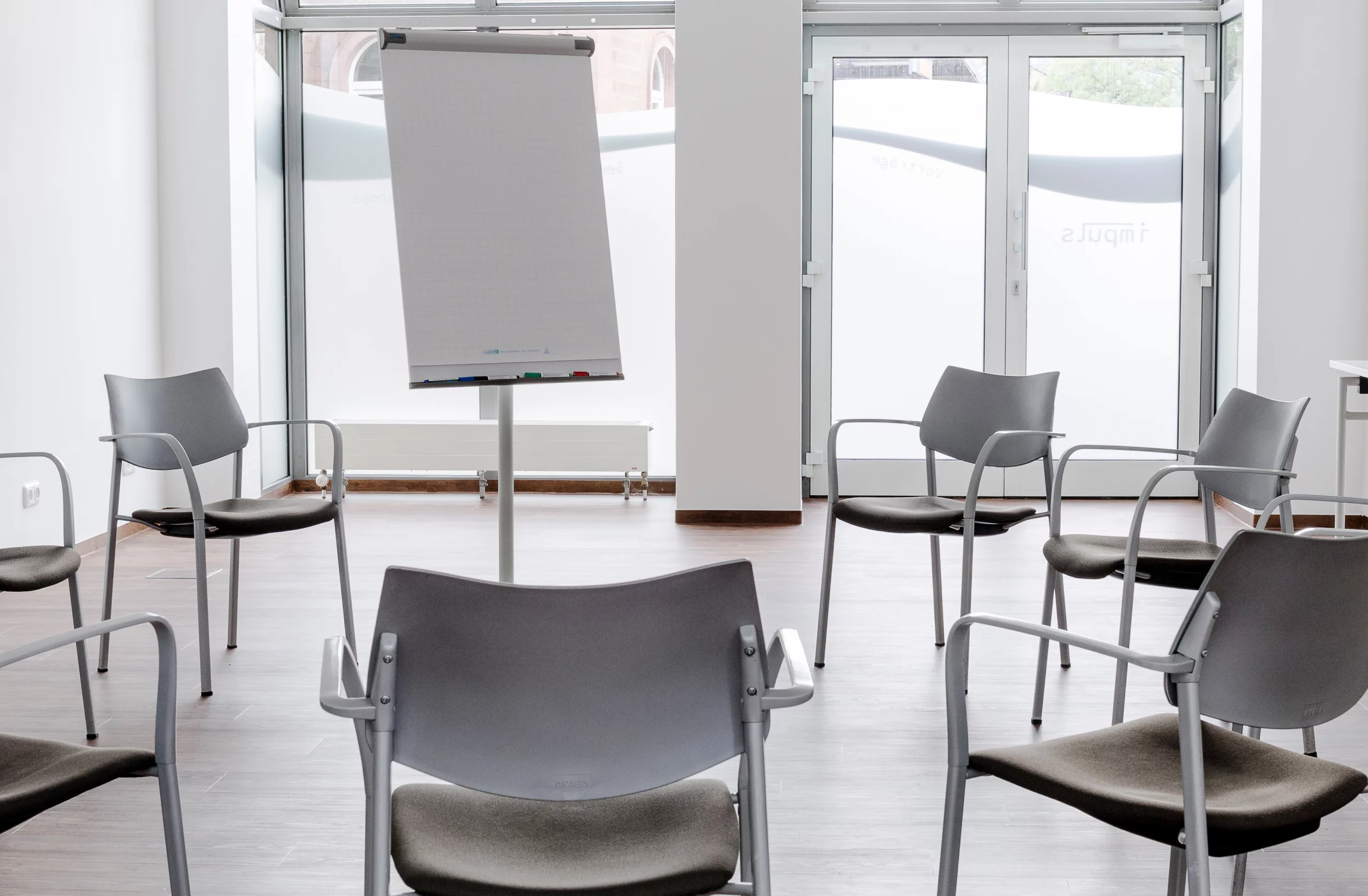 Sie benötigen nur Beamer und 4 Stühle? Oder lieber Stuhlkreis, Flipchart & Workshopwände? Kein Problem.